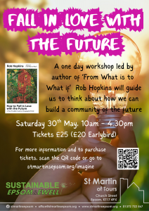 Invest a few hours in yourself and your community by joining St Martin’s Church and Sustainable Epsom & Ewell at a one day workshop led by author of ‘From What Is to What If’ Rob Hopkins.